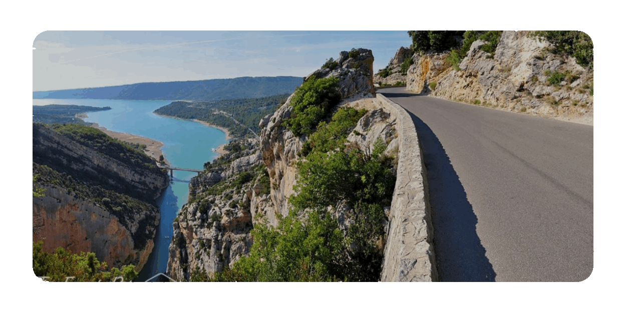 Maravíllate con los espectaculares desfiladeros del Verdon o de l'Ardèche (junto a PACA), con carreteras que se aferran a acantilados a cientos de metros sobre ríos turquesa. Enfrenta el desafío de la Corniche des Cévennes (también junto a PACA), o recorre la D900 y la D954, donde las curvas alpinas se entrelazan sobre las aguas profundas del Lago de Serre-Ponçon, una combinación surrealista de montañas y paisajes lacustres.